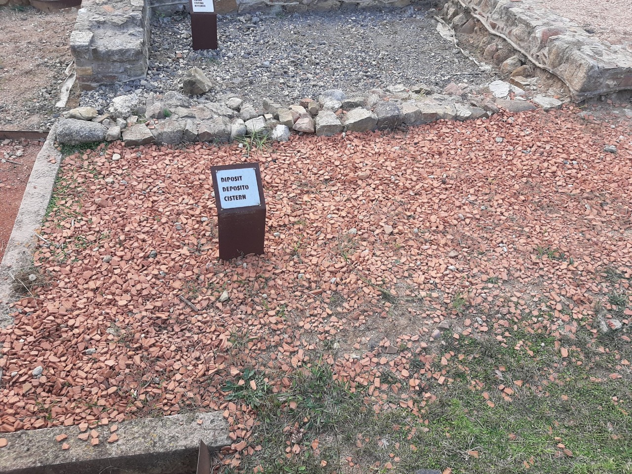 Parece ser que la villa se repartía en un par o tres niveles de terrazas con unas preciosas vistas al mar. La parte superior era la parte noble y de residencia de los dómines. Lo que véis en las imágenes es la parte agrícola y comercial. Desde un patio central pavimentado con cal se abren dos pasillos con estancias laterales de almacenaje, salas con dolias de un metro de profundidad para vino, aceite o cereales, una cocina, un gran depósito y espacios de aprovisionamiento. La villa también confeccionaría cerámica ya que se ha hallado un sello con el nombre de Porcianus, motivo por el que se cree que fue éste uno de sus numerosos propietarios. Estas mercancías se transportaban por la principal vía romana, pero también por el puerto.