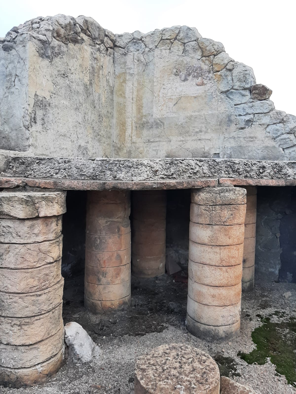 Parece ser que la villa se repartía en un par o tres niveles de terrazas con unas preciosas vistas al mar. La parte superior era la parte noble y de residencia de los dómines. Lo que véis en las imágenes es la parte agrícola y comercial de todo el complejo. Desde un patio central pavimentado con cal se abren dos pasillos con estancias laterales de almacenaje, salas con dolias de un metro de profundidad para vino, aceite o cereales, una cocina, un gran depósito y espacios de aprovisionamiento.