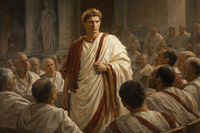 Las legiones de Augusto acaban con las de Marco Antonio y Cleopatra en la batalla de Accio, dando por finalizada la rebelión de los amantes y por ende, convirtiéndose en el primer hombre de Roma. En este viaje a tierras Egipcias, Augusto visita la tumba de Alejandro Magno, al igual que lo hicieron sus antepasados y posa sobre los restos del gran general una corona y lo cubre de flores.