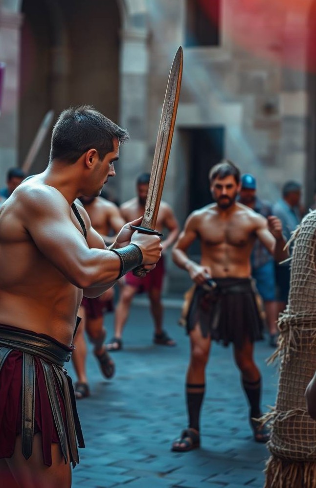 Su vida se reducía al entrenamiento constante en las escuelas de gladiadores, eras propiedad de un lanista y recibías una dieta alimentaria estricta que incluían las cenizas de plantas diluidas en los nutritivos caldos de legumbres, para potenciar su resistencia ósea y la recuperación de las heridas. No parece de entrada una vida demasiado apetecible. Pero por esta misma razón, por el gran coste que representaba para el propietario la formación y mantenimiento de cada hombre, no siempre participaban en luchas a vida o muerte. En ocasiones las peleas, acababan con heridas simuladas a través de pequeños sacos de sangre que se rompían al contacto del arma de tu oponente, causando la aclamación de un público fervoroso y excitado.